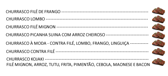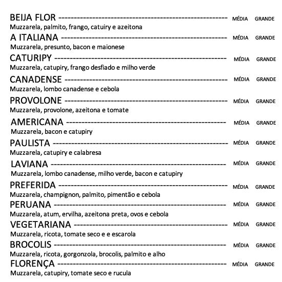 Restaurante e Pizzaria Beija Flor Facebook Instagram Comunicamos que as Terças-feiras estaremos fechados! Pizzas CHURRASCOS E MEDALHÕES FILÉS LANCHES PORÇÕES MASSAS E GUARNIÇÕES REFEIÇÕES SALADAS BEBIDAS